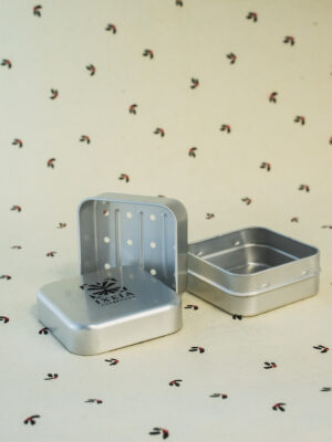Lata metálica diseñada para guardar y conservar de forma limpia y segura tus pastillas de champú sólido o jabón, tanto en casa como durante tus viajes.